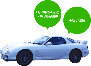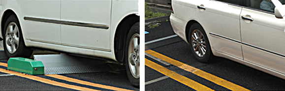 お客様のクルマのホイールやタイヤがロック板と接触し、傷ついてしまうことがあります。高級車の場合、深刻なトラブルに発展する可能性も。![]() |