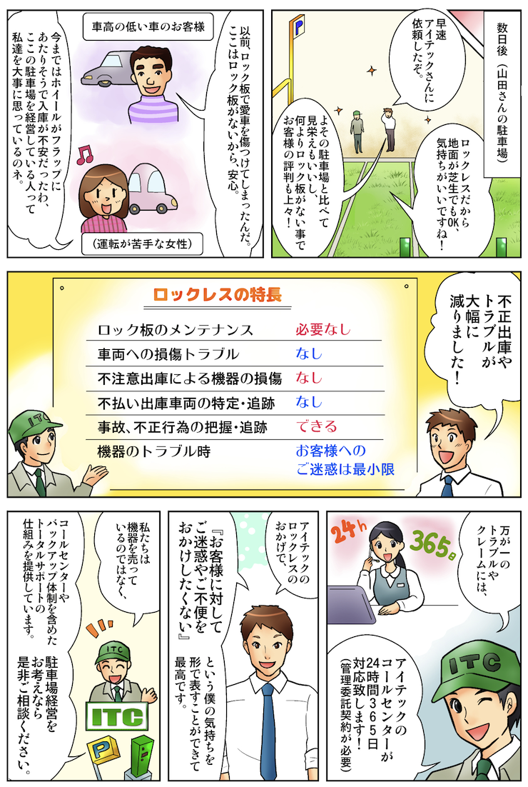 ロックレスコインパーキングは、アイテックが長年に渡り蓄積して来たIT技術を基に実現できました。