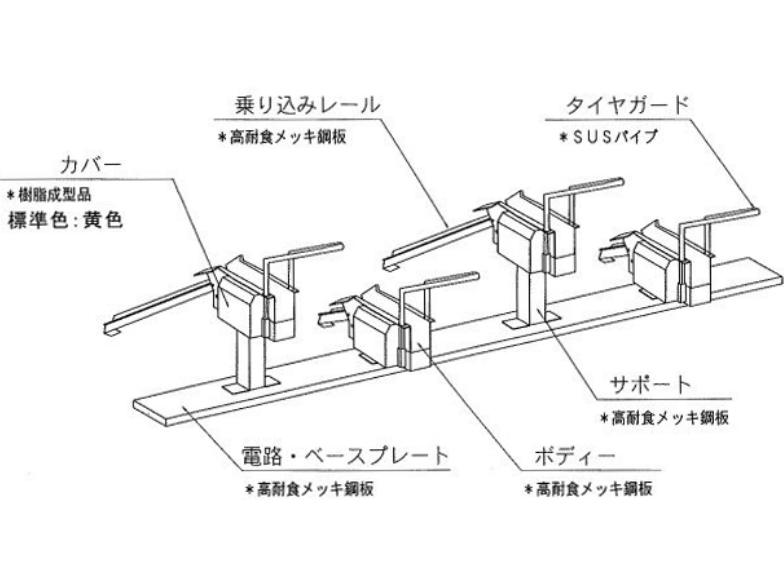 | 車両検知方式 | ラックレール侵入による前輪のロックおよび精算による自動解放機能 |