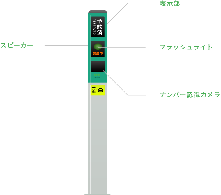 | 車両検知センサー | ループコイルセンサー、ハイブリッドセンサー(電波+音波)、超音波センサー |