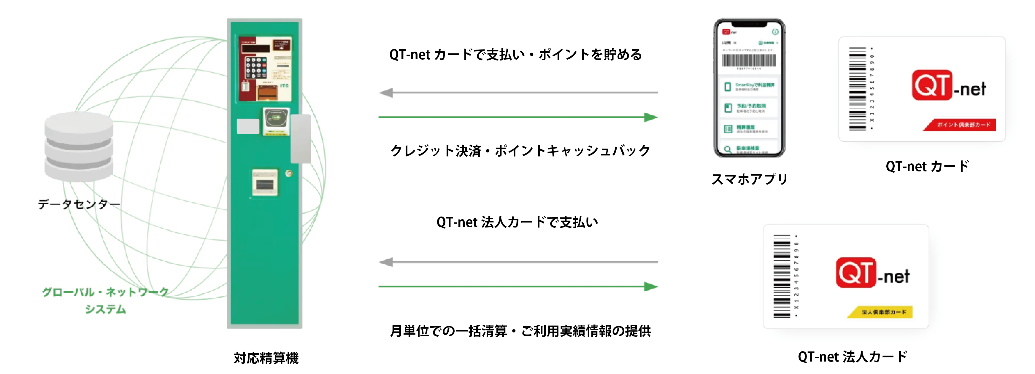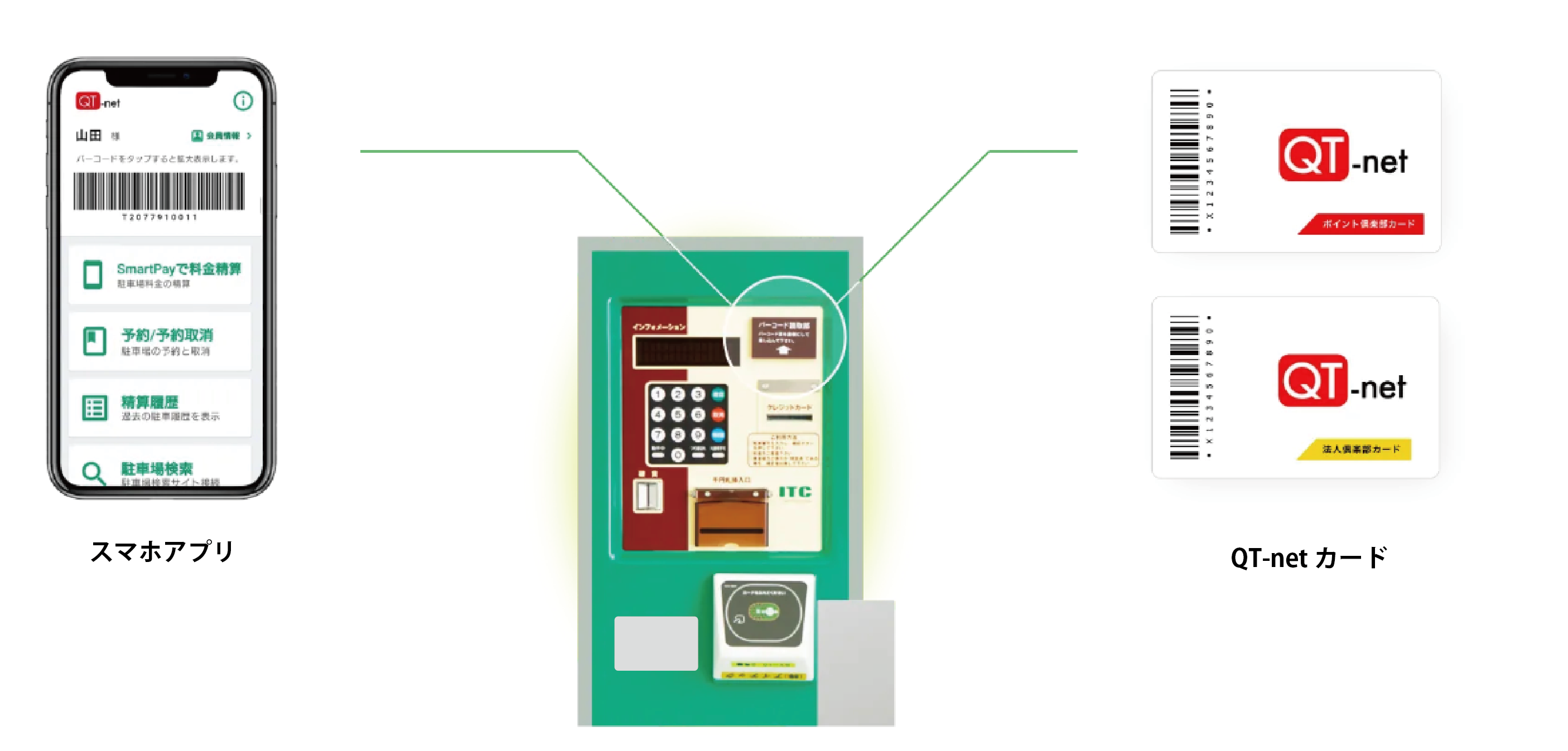QT-netメンバーの方は、システム対応精算機のある駐車場なら、どこでも同様のサービスが受けられます。